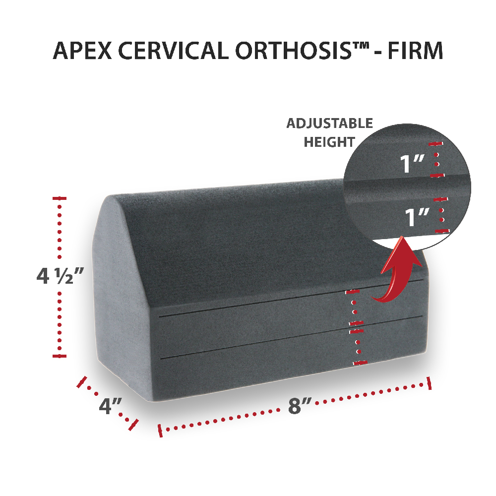 Choose the standard Apex Cervical Orthosis, offering adjustable height and two firmness levels, including a gentler option for those with acute injuries or sensitive necks.